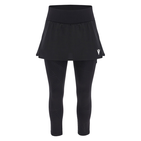 Designed to accompany every movement with confidence during padel matches, the Regina women's skirt with 7/8 leggings offers the ideal combination of style and functionality. This model combines the lightness and versatility of the Micro Stretch fabric skirt with the practicality of Poly Light Stretch leggings, ensuring optimal freedom of movement and a stable fit. The embossed design adds a dynamic and modern look that enhances the garment. The leggings are equipped with a practical ball pocket, an essential detail for those who want everything within reach without compromising on comfort. The fitted cut and elasticized fabric ensure a shape-hugging fit, perfect for expressing energy on the court.
